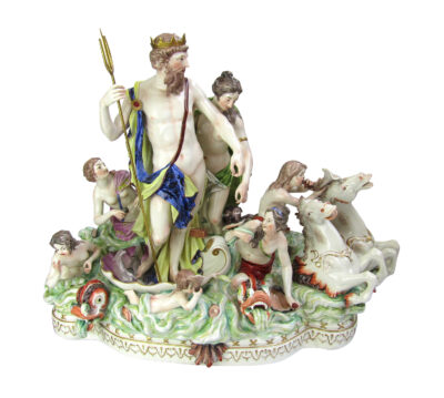 Large Late 19th Century Continental Porcelain Figural Grouping 21 inch – “Poseidon” with Sea Creatures & Horses.
