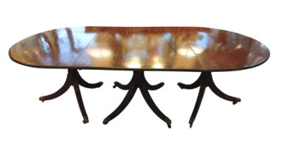 Rare Triple Pedestal Mahogany Dining Room Table – Georgian Style – English circa 1890.