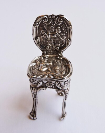 Miniature Hallmarked English Sterling Silver Repousse Chair, Birmingham 1926