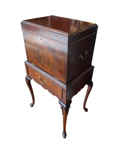 Vintage Queen Anne Style Walnut Cutlery Chest on Stand with Multiple Drawers
