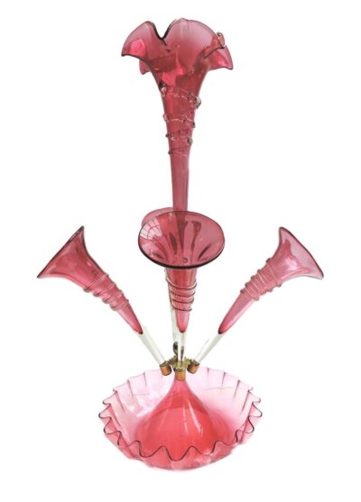 Victorian Cranberry Glass 5 Flute Epergne – England, circa 1870