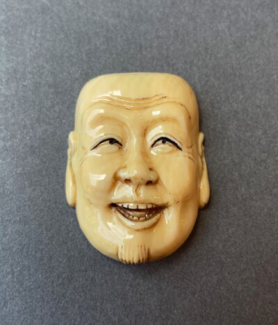 Japanese Carved Ivory Netsuke of a Man’s Face, Signed. Circa 1900