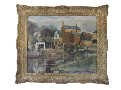Large Oil Painting on Canvas – Irish Artist – Ronald Ossory Dunlop (b.1894-d.1973) – “the Ferry at Stratford-on-Avon” d.1937 – 25 x 31