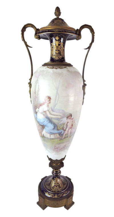 19th Century French Sevres – 42 Inch Urn – Signed & Hand-Painted Porcelain & Bronze.