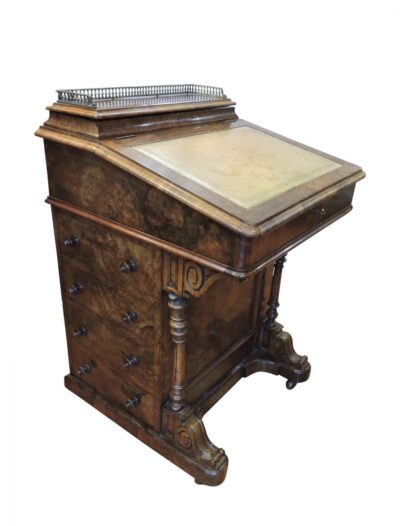 English Burled Walnut Davenport Desk, James Shoolbred & Co. Makers, circa 1860