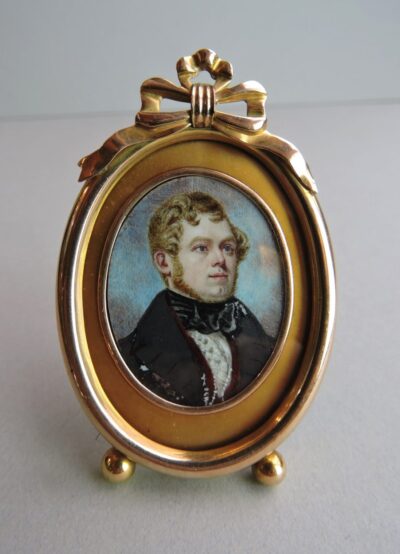 Antique Georgian Miniature Portrait circa 1800 – displayed in 9ct Gold Frame (dated 1906)