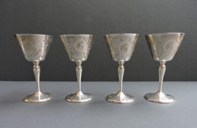 Set of 4 Birks Sterling “Sherry” Stemmed Drinking Cups – Beautifully Engraved – circa 1910