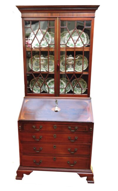 Georgian Period Mahogany English Slant Top Desk with Upper Cabinet – circa 1800.