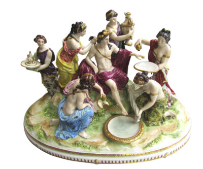 Rare: “Apollo Served by the Nymphs” a Very Large 20 x 16 inch Volkstedt German Porcelain 7 Figural Grouping after Francois Girardon (Palace of Versailles)