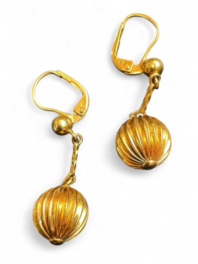Celebratory English 9K Gold Ball Ball Earrings, Circa 1910