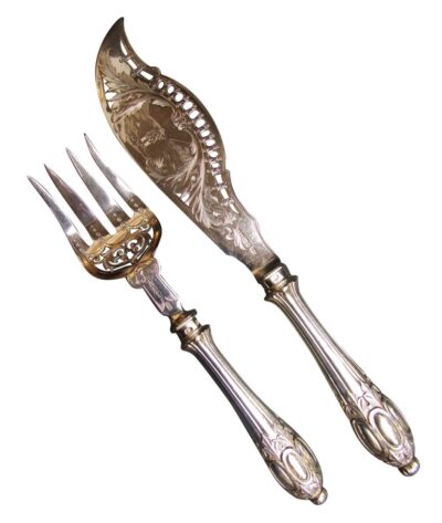 Pair of English Hallmarked Sterling Silver Fish Servers, dated 1865