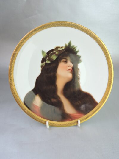 Art Nouveau Dresden Hand Painted Portrait Plate – Titled “Daphne”