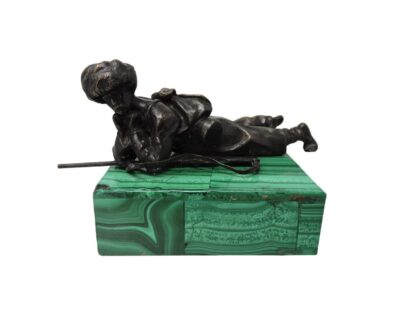 A Fine Russian Bronze of a Cossack with Rifle on a Green Malachite Stone Base – Grachev Brothers, Imperial Silversmiths.