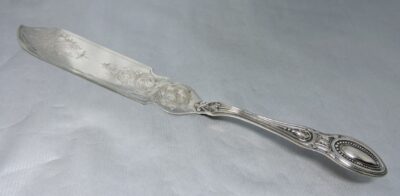 French Embossed Silver Cake Knife with Serrated Edge, Engraved “Emma” on the Handle