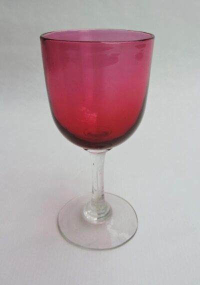 Hand-Blown Victorian Cordial Glasses in Cranberry with Clear Glass Stem & Base – Sold Separately.