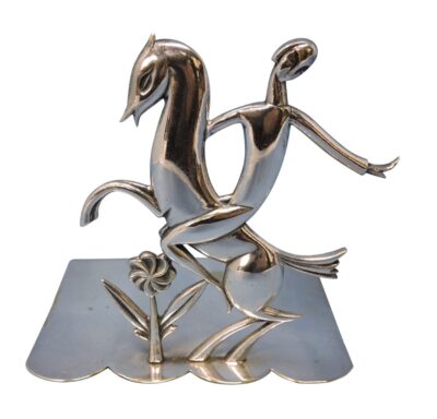 Hagenauer Austria Silver Plate Book End with Figure on Horseback over Flower
