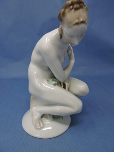 Hand-Painted Herend Hungary Porcelain Figurine of a Bathing Woman