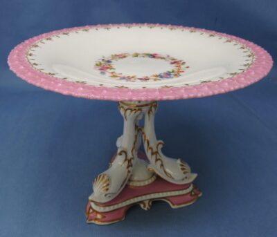 English Porcelain Comport on 3 ‘Dolphin Fish’ Pedestal, Painted Floral and Gilt Decoration, c. 1880