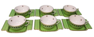Set of 6 Royal Worcester Porcelain Art Deco Painted / Enamelled Demi-Tasse Cups and Saucers, Pattern 1544, Dated 1936