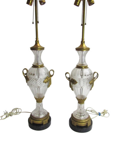 Pair of Beautiful Quality Austrian Cut Clear Crystal & Gilt Bronze Mounted Lamps.
