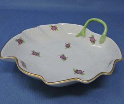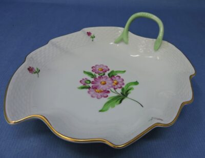 Herend Hungary Hand-Painted Porcelain Leaf Shaped Dish, Decorated with Floral Sprays