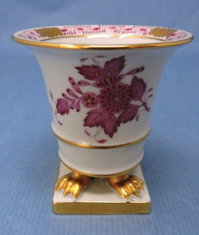 Herend Hungary Porcelain Small Cache Pot in White with Apponyi Red Chinese Bouquet, Gold Trim and Feet