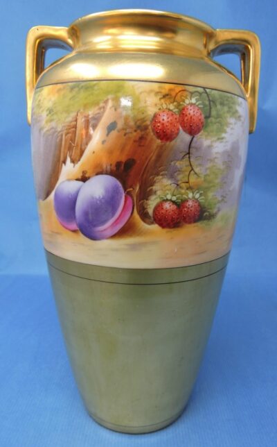 Pickard Bone China Hand-Painted Scenic & Fruit 2-Handled Vase, Signed by the Artist, “J. Nessy”