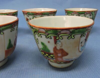 Chinese Painted Porcelain Set of 5 Small Tea Bowls – “Famille Rose” Pattern