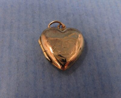 9 Ct Engraved Yellow Gold Small Heart-Shaped Locket with Double Picture Inserts & Hinged Opening