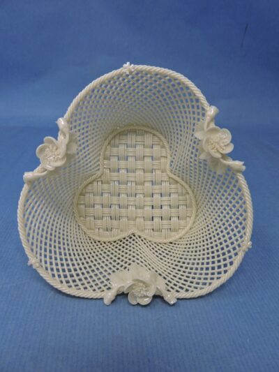 Belleek Irish Porcelain Basket Weave Bowl with Applied Flowers, Buds & Leaves