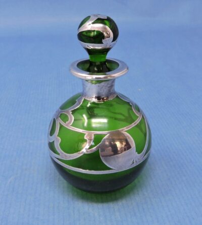 Green Glass Silver Overlay Perfume Bottle – c.1900