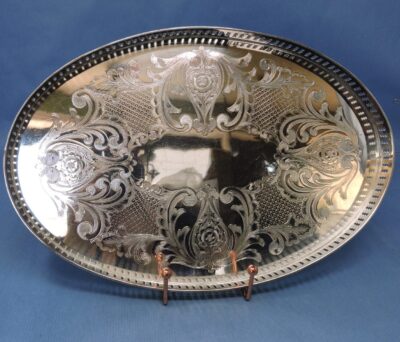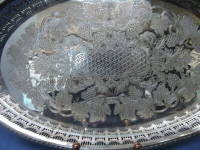 Cavendish Silver-Plated Gallery Tray – Pierced Rim, Decorated with Engraved Grapes & Leaves, Made in Sheffield England
