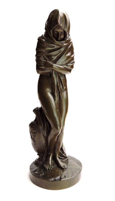 “Winter” – Bronze Figurine of Woman, after Houdon (Jean Antoine Houdon 1748-1841) – F. Barbedienne Fondeur – late 19th Century.
