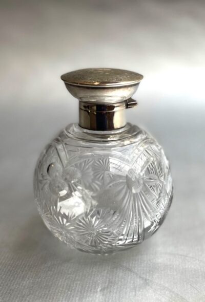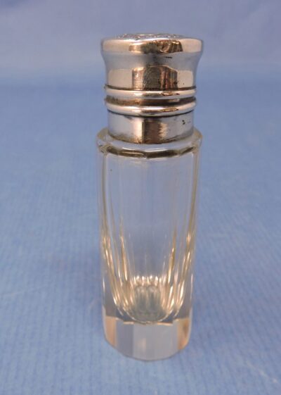 English Hallmarked (Birmingham 1911) Sterling Topped Etched Crystal Perfume Bottle with Stopper