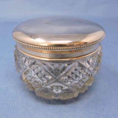 Etched Clear Crystal Dresser Jar with a Sterling Silver Lid
