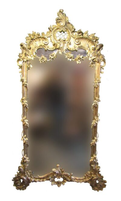 Large 19th Century Italian Gilt Wood Rococo Style Mirror – 75 inches Tall.