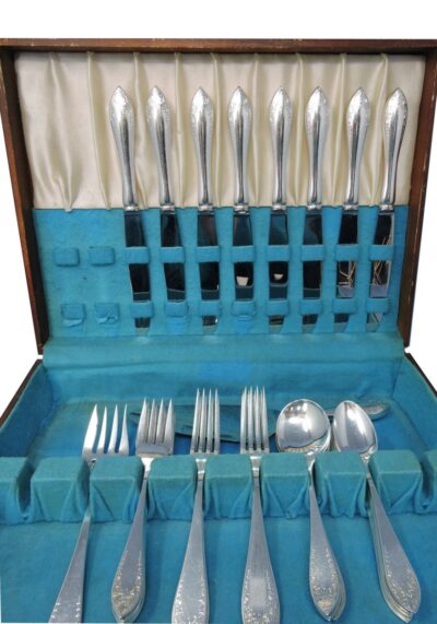 Birks Sterling Silver Luncheon Set for 8 Plus 3 Serving Pieces – “Tudor Royal” Pattern