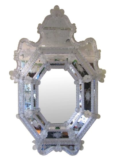 Large Venetian Glass Mirror with Florets & Etched Decoration