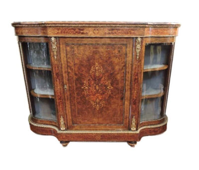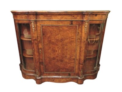 Burled Walnut English Victorian Credenza with Curved Glass Sides – circa 1860