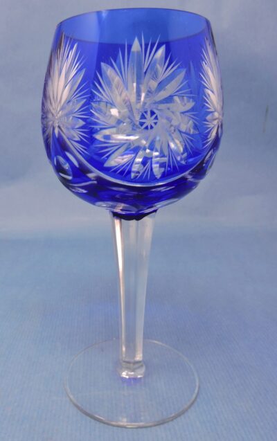 Bohemia Czechoslovakia Cobalt Blue Cased Crystal Cut to Clear Wine Goblets – Each Sold Separately
