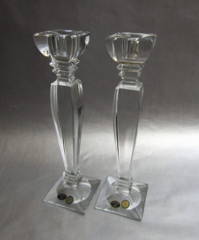 Pair of 12 Inch Tall Bohemia Czech Republic 24% Lead Crystal Candlesticks – Original Labels
