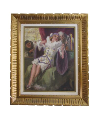 Art Deco Oil Painting on Canvas – Richard Geiger (Vienna 1870-1945 Budapest) – “Columbine & Pierrot”