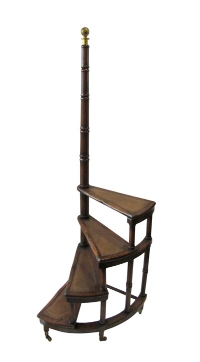 English Mahogany Semi-Circular Library Steps with Tooled Leather on Steps, Brass Accents