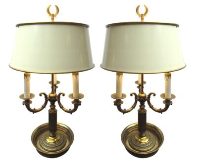 Pair of Vintage Bouillotte Lamps with Tole Metal Shades