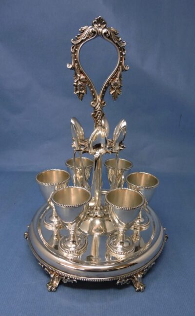 Victorian English Silver-Plated Soft Boiled Egg Server – 6 Egg Cups & Spoons