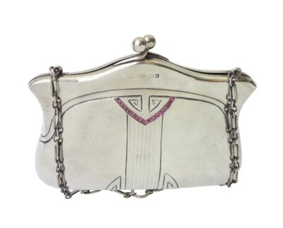 Rare Secessionist Sterling Silver Purse inset with Pink Tourmalines – Dated 1906