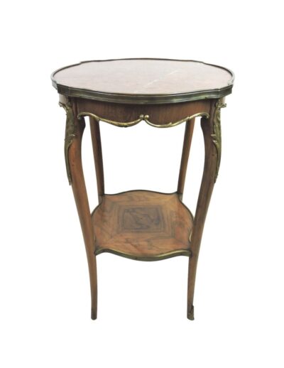 Late 19th Century French Walnut Occasional Table with Marble Top & Bronze Trim, Tapered Legs
