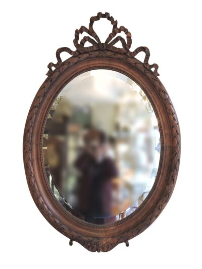 French Carved Walnut Oval Mirror circa 1900. 46 inches x 32 inches