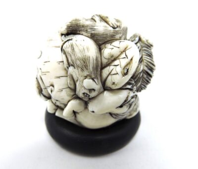 Japanese Carved Netsuke of Intertwined Chinese Zodiac Animals on a Circular Ebony Stand c.1890