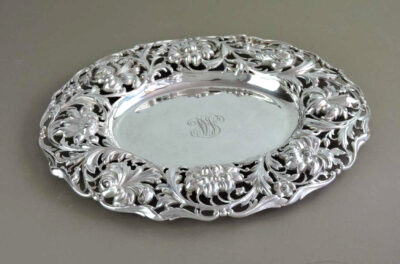 Tiffany & Co – Sterling Silver Chrysanthemum Repoussé Oval Pierced Platter – circa 1902-1907.